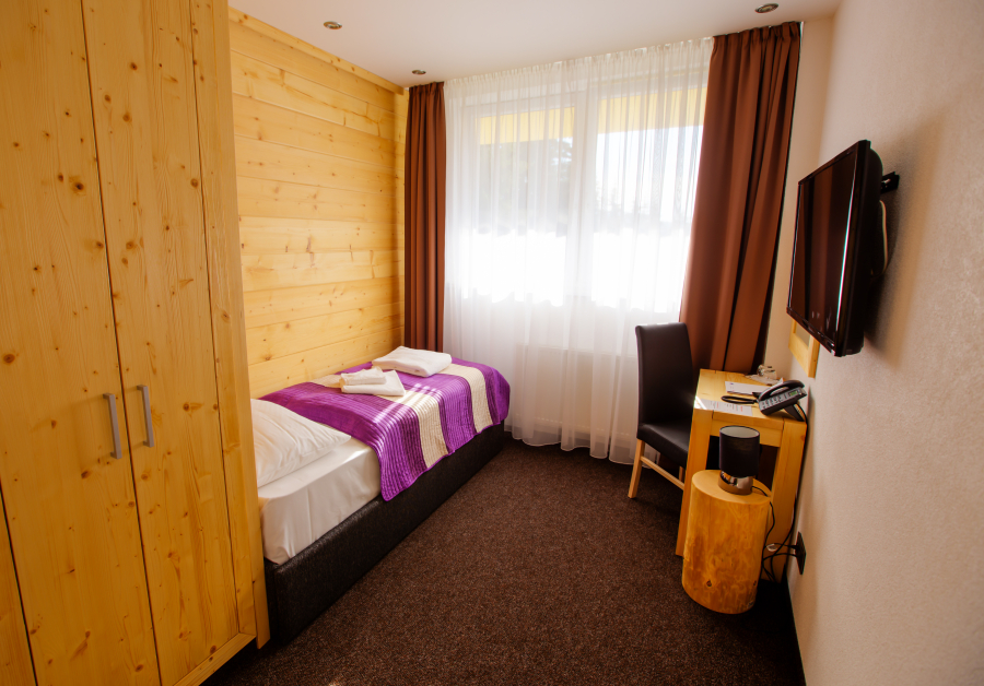 Jednolôžková izba Standard je komfortne zariadená izba s výhľadom na tatranskú prírodu, so samostatnou kúpeľňou so sprchovacím kútom a s toaletou. V tejto izbe sa nachádza posteľ, ktorá je po rozložení vhodná pre 2 osoby.